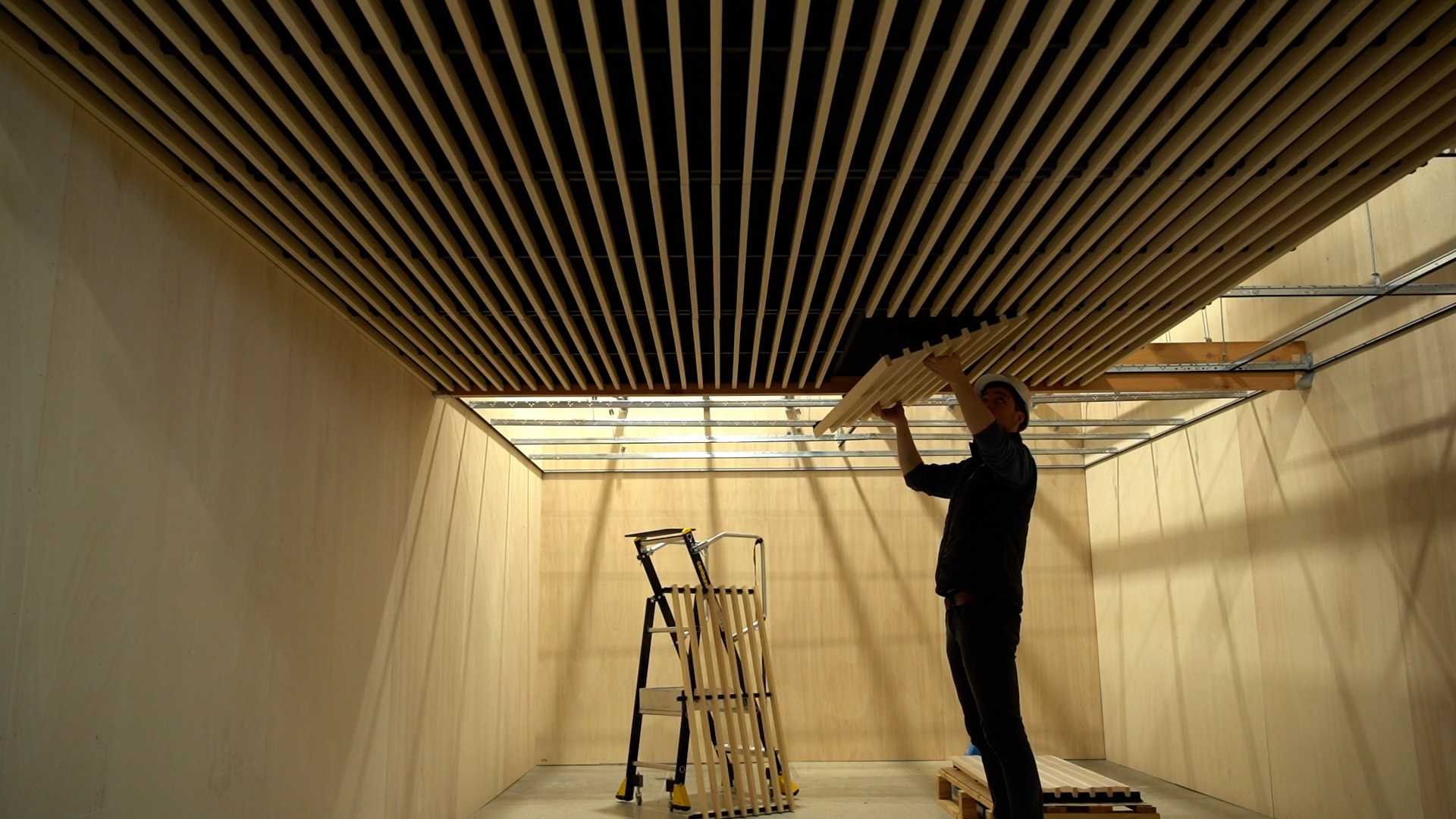 Un second brevet concerne les panneaux de claustra associant bois et toile pour des qualités acoustiques remarquables.