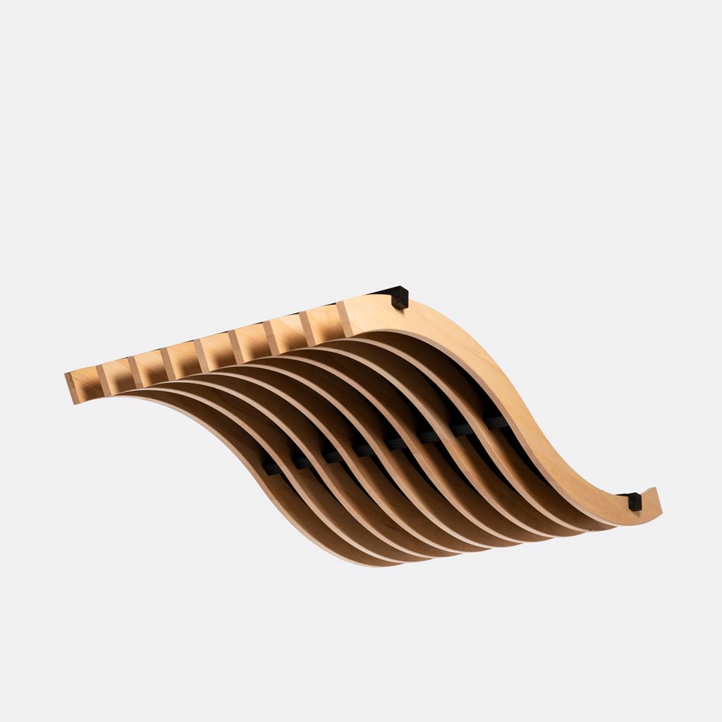 Suspended acoustic island in solid wood