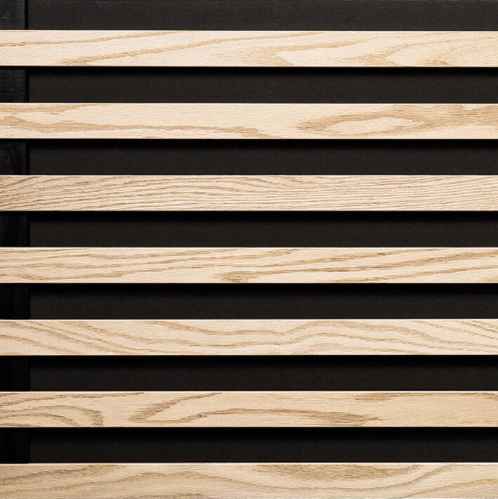 Acoustic mineral wool tiles with black fleece facing 2,4 Kg / m2 surfaced with black fleece facing (format 600 x 600 mm ; 20 or 22 mm thickness). Not supplied by Laudescher