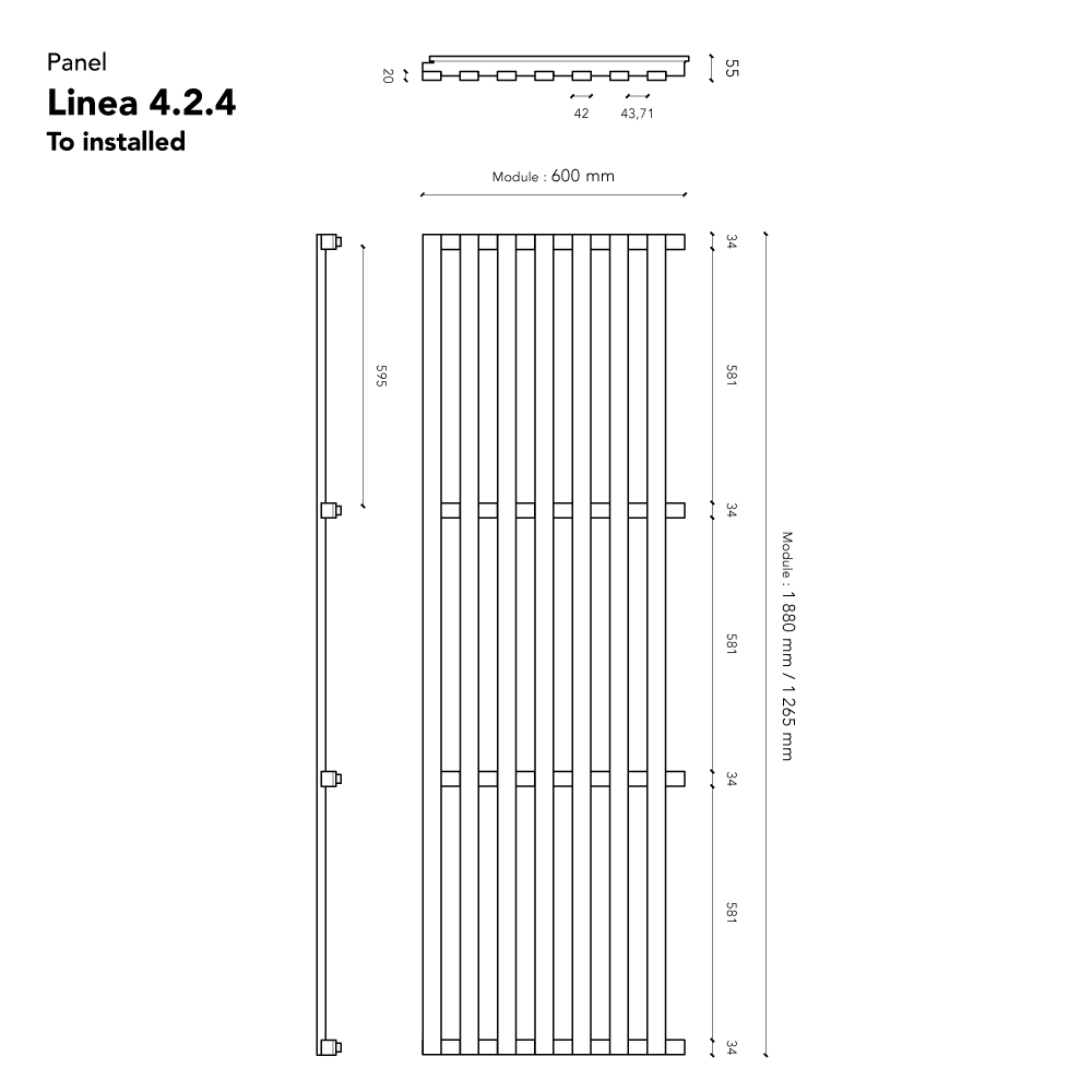 The various sound absorption data (αp, αw, absorption class) have been calculated in compliance with ISO 11654(LINEA + LR 20mm acoustic complement on E250mm plenum).