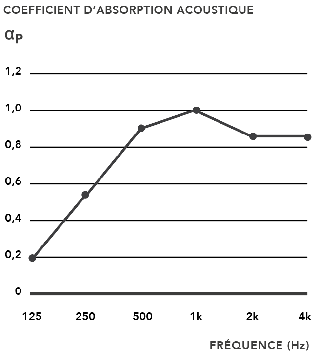 L’absorption acoustique a été mesurée selon la norme ISO 354.