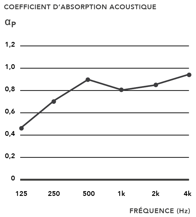 L’absorption acoustique a été mesurée selon la norme ISO 354.
