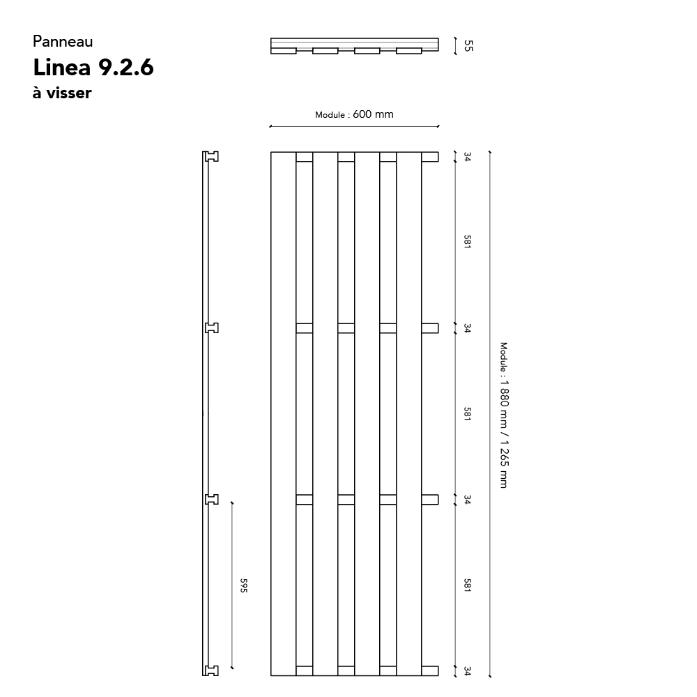 1880 x 600 mm et 1265 x 600 mm |